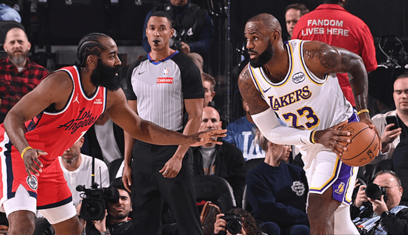 湖人目前9-23落后快船,流言老詹籃板6-11落后。
