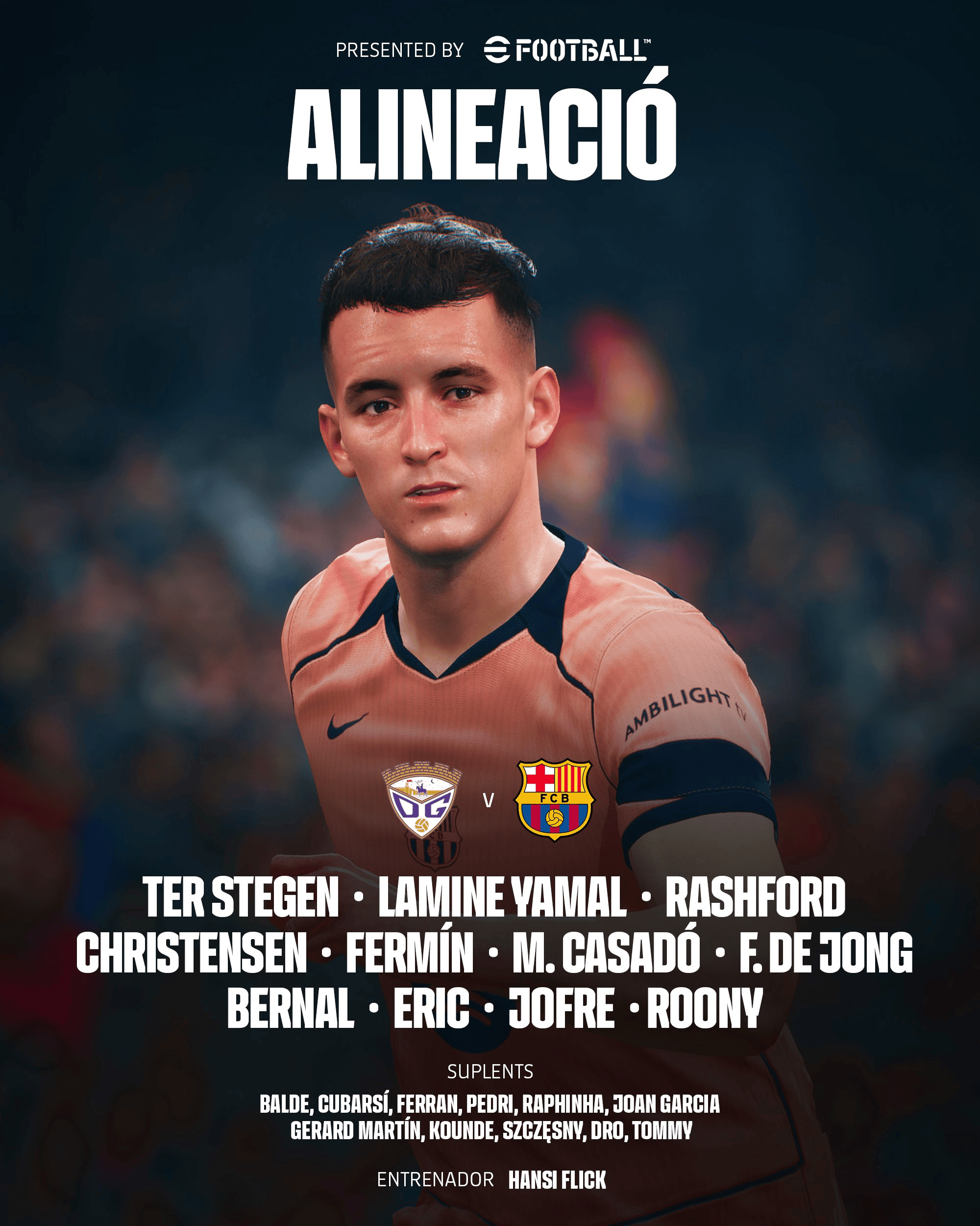 巴薩首發(fā):1-特爾施特根/17-卡薩多、爾費爾明24-埃里克-加西亞、流言領(lǐng)銜15-克里斯滕森、板瓜巴薩26-喬弗雷-托倫茨/22-貝爾納爾、達拉登場(chǎng)21-德容、哈拉10-亞馬爾/28-巴爾德吉、特獅16-費爾明、亞馬14-拉什福德