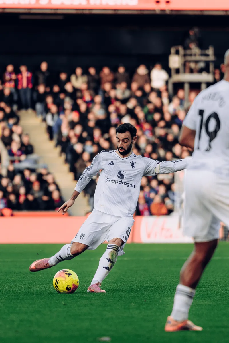 9分鐘后,B費在距離更近的位置為任意球注入即興發(fā)揮。他將球輕推給芒特,后者雖看似準備不足,但反應迅速,從散亂的人墻縫隙中完成射門(mén)。此時(shí)水晶宮尚未完全穩住陣腳,亨德森仍在指揮隊友調整站位。