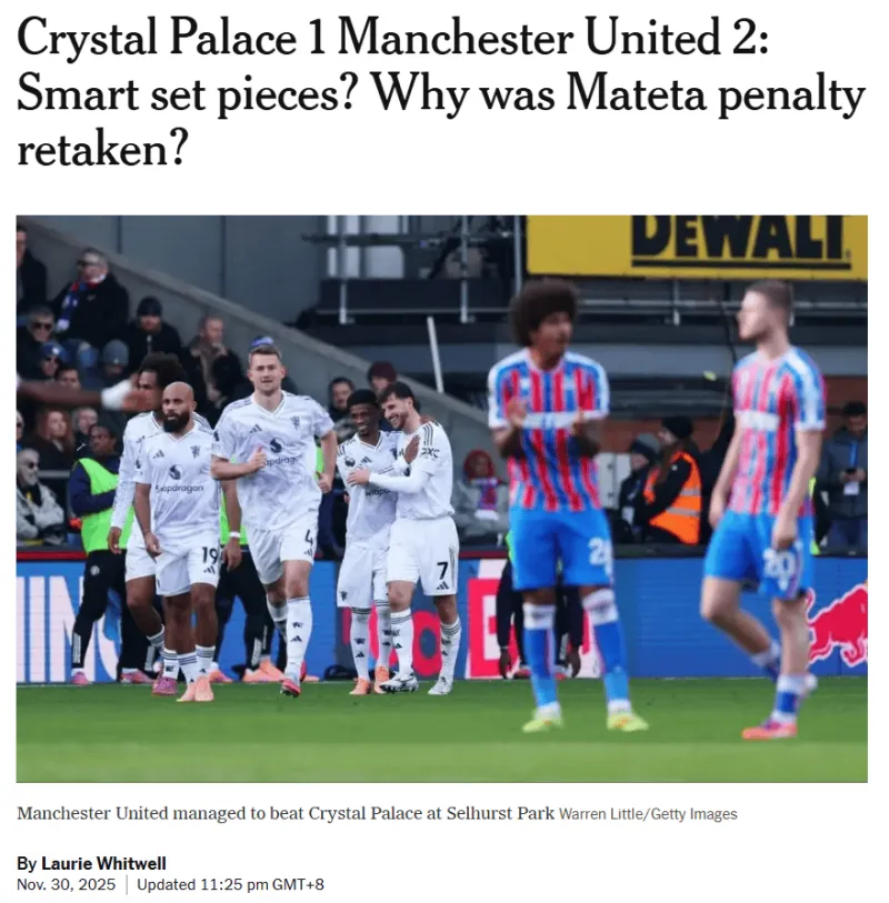 水晶宮1-2曼聯(lián):精妙定位球制勝?馬特塔點(diǎn)球為何重罰?