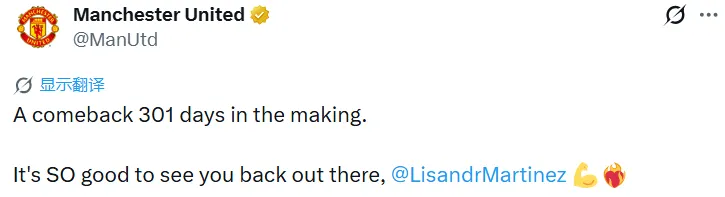 官推恭喜利馬時(shí)隔301天重返賽場(chǎng)