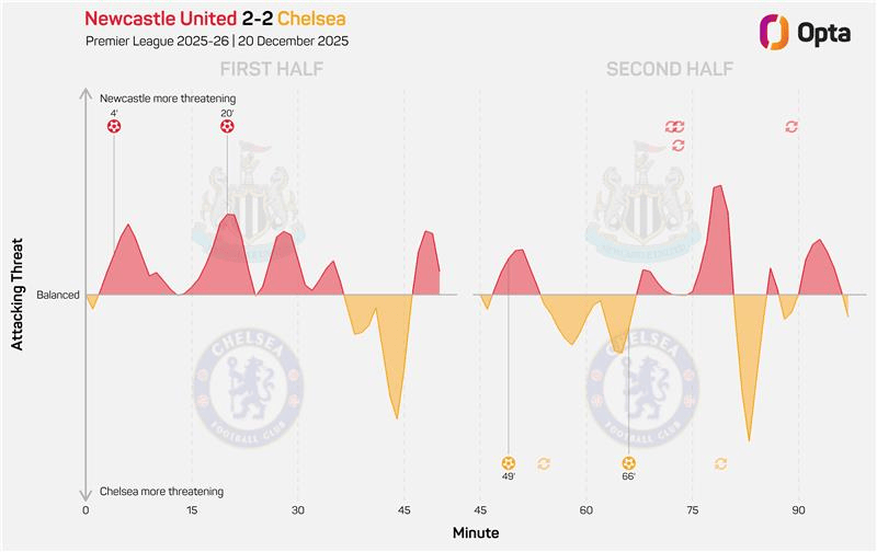 虎撲12月20日訊 英超第17輪,切爾西在上半場(chǎng)客場(chǎng)0-2落后于紐卡斯爾聯(lián)隊的超客場(chǎng)上情況下最終2-2戰平對手。