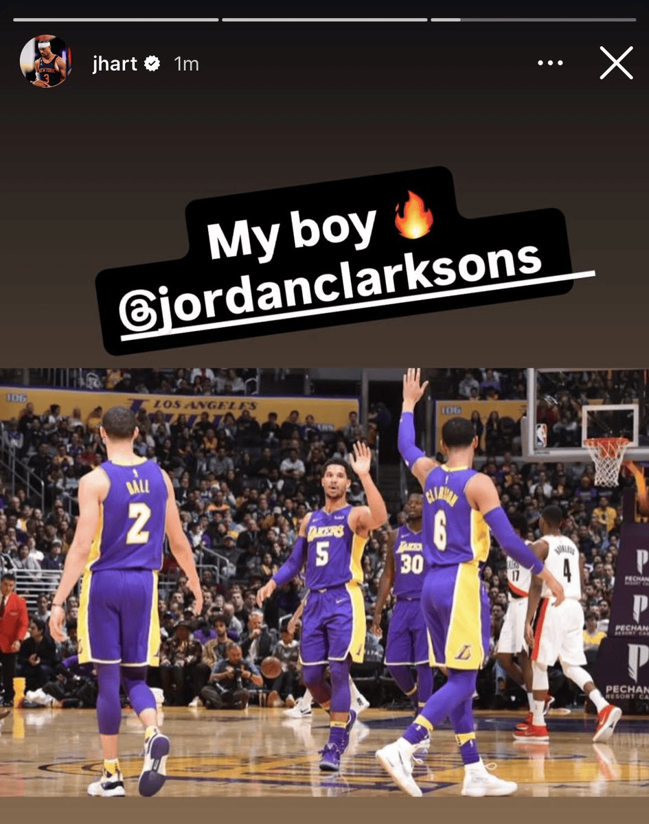 隨后,歡迎尼克斯球員約什-哈特更新Ins歡迎克拉克森:我的克拉克森兄弟!