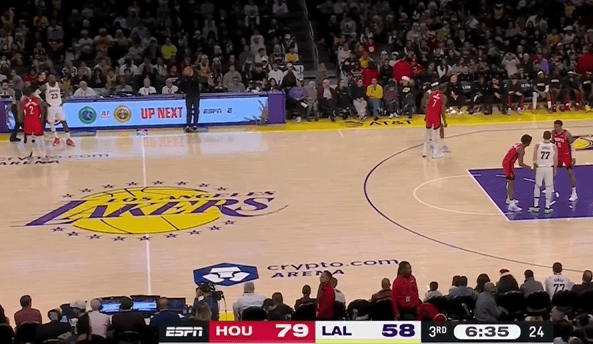 比賽第三節,出波火箭打出一波16-5,板火已經(jīng)領(lǐng)先湖人到21分。箭第節打