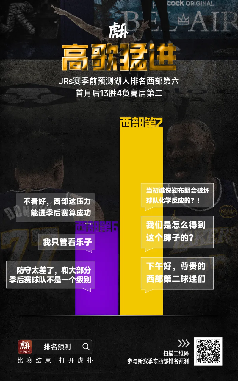 (上圖為當前湖人西部排名vsJRs賽季前預測湖人西部排名的對比)