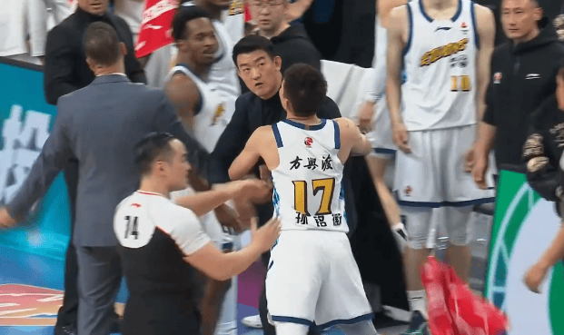 第三節比賽中,廣廈周琦進(jìn)球后疑似延誤廣廈發(fā)球,發(fā)球犯規王博怒噴裁判被吹技術(shù)犯規。王博