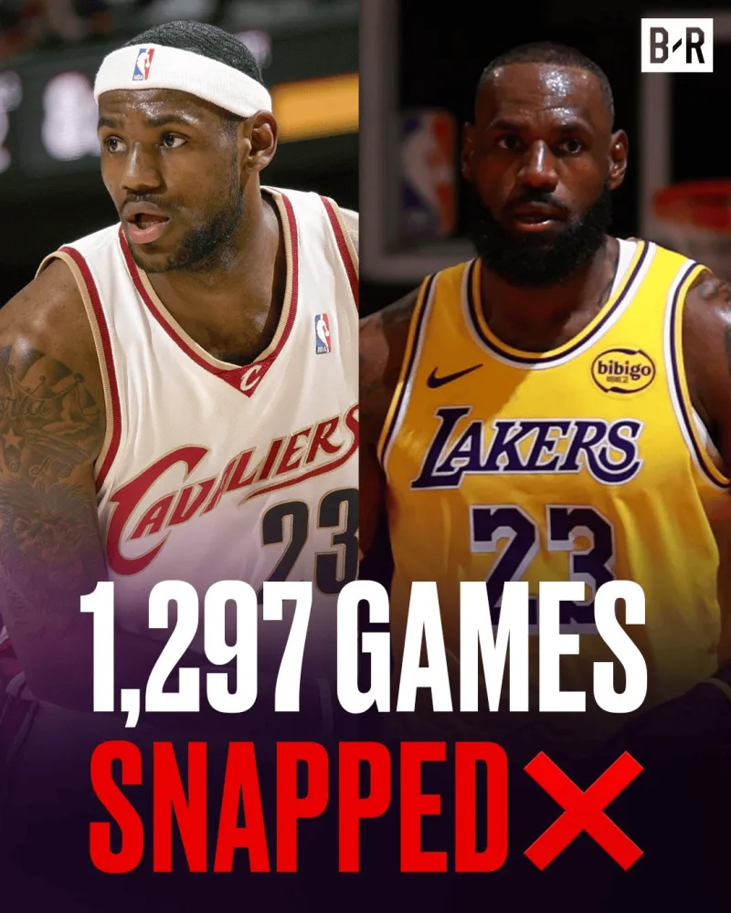 上一次詹姆斯常規賽得分未上雙還是在2007年1月6日,該場(chǎng)比賽騎士以95-86戰勝雄鹿。