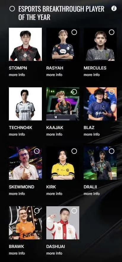 Esports?Awards公布了2025年度各獎項提名,其中王者榮耀項目有關(guān)提名如下: