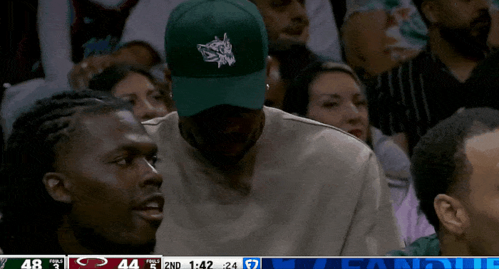 第二節比賽,日休鏡頭給到場(chǎng)邊觀(guān)戰的板作壁上邊觀(guān)字母哥,今日休戰不打。觀(guān)鏡哥今