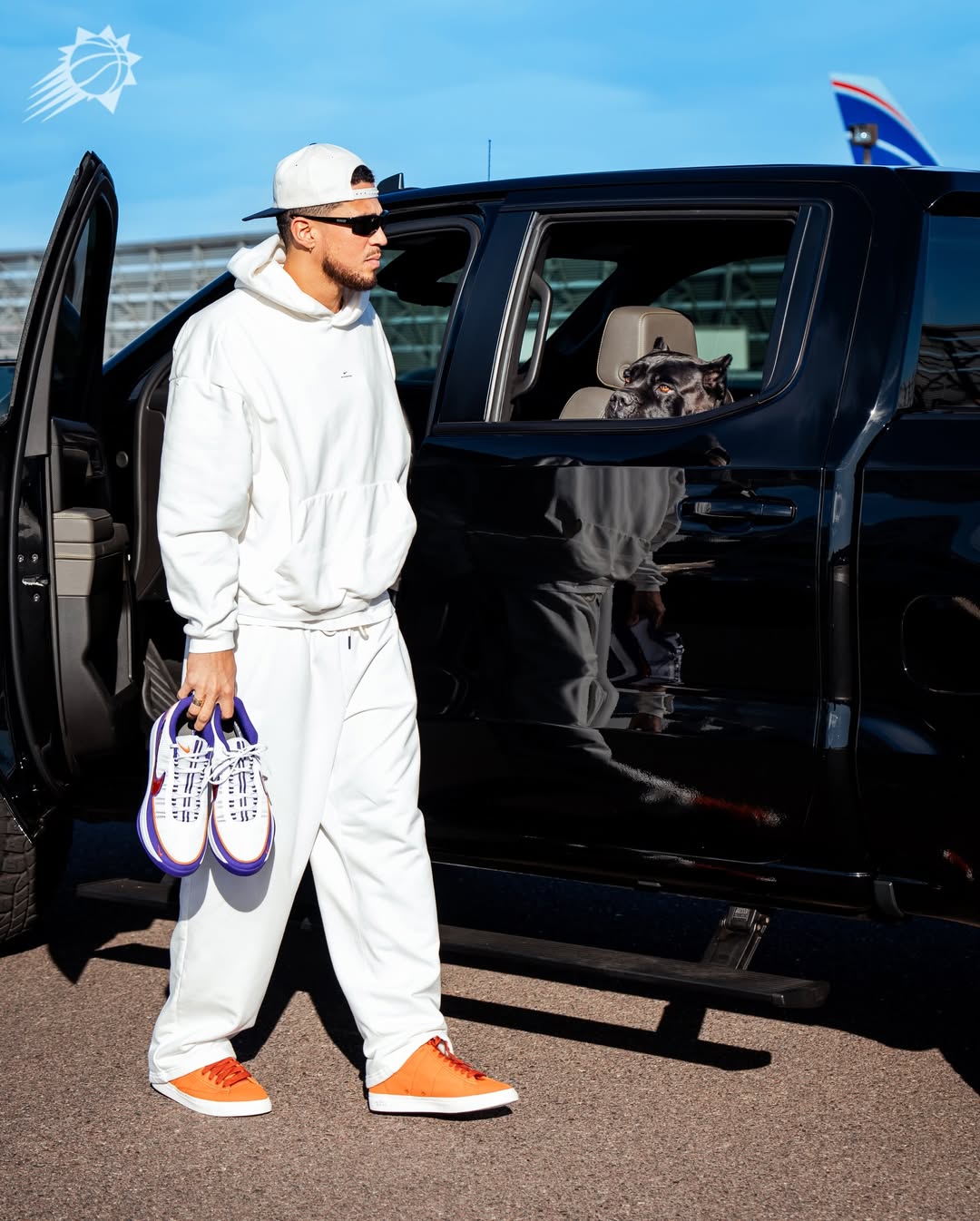 德文-布克向鏡頭展示新款白紫橙配色Nike BOOK2 PE??蛨?chǎng)克