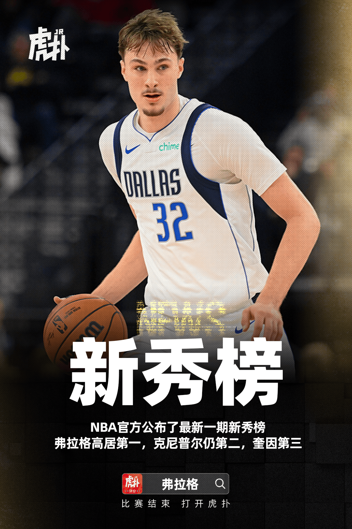 虎撲12月18日訊 今日,NBA官方更新了最新一期的格榜新秀榜: