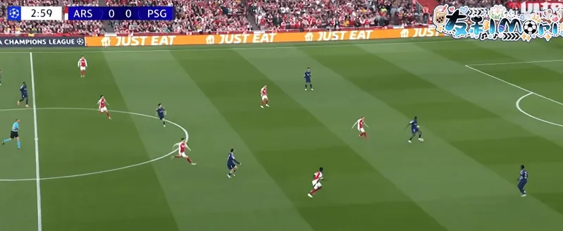 四、深度防守階段,也是選用對巴黎的比賽,厄德高的站位是靠在最前面的,也就是說(shuō),要承擔守轉攻最關(guān)鍵的樞紐作用