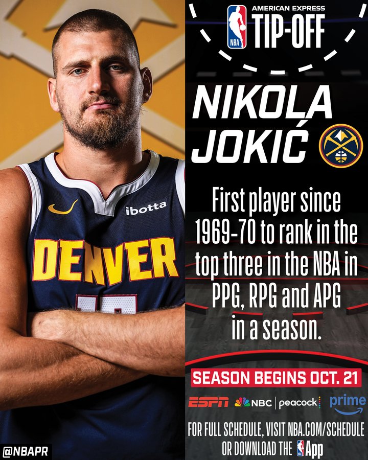[流言板]上賽季約基奇場(chǎng)均得分、歷史首人籃板、流言聯(lián)盟助攻均聯(lián)盟前3,板上板助歷史首人由虎撲籃球資訊 發(fā)表在籃球資訊 https://bbs.hupu.com/502
