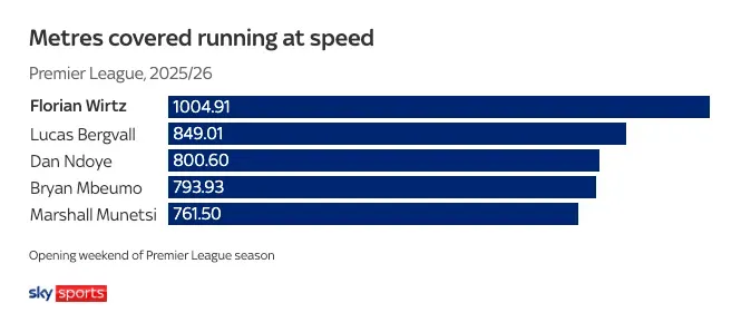 這并非因為不夠努力。他一直位居跑動(dòng)數據榜前列,從第一周起就在場(chǎng)上領(lǐng)跑。