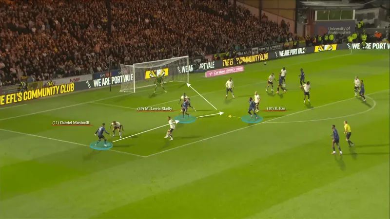 • 我也認為應該為特定球員創(chuàng )造更具體的射門(mén)機會(huì )("厄德高區域"、恩瓦內里特區等),這可以通過(guò)掩護和擋拆來(lái)完成。一種被預期并已見(jiàn)成效的射門(mén)模式是埃澤在角球二次進(jìn)攻中良好觸球的能力。
