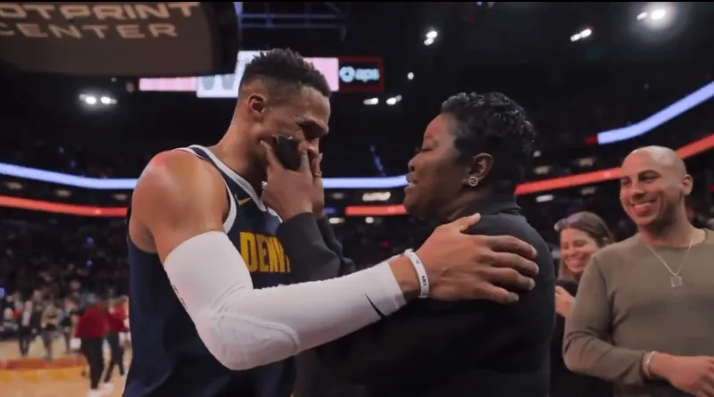 凱文-杜蘭特的母親旺達-杜蘭特在賽后看到威斯布魯克后,用手戳了戳他的臉頰,并說(shuō)道: