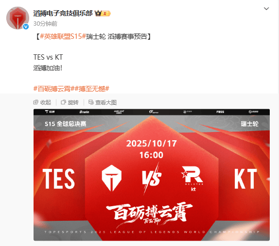 [流言板]TES發(fā)布對戰KT賽前海報:百礪搏云霄,滔搏加油滔搏加油由虎撲游戲電競資訊 發(fā)表在英雄聯(lián)盟 https://bbs.hupu.com/lol