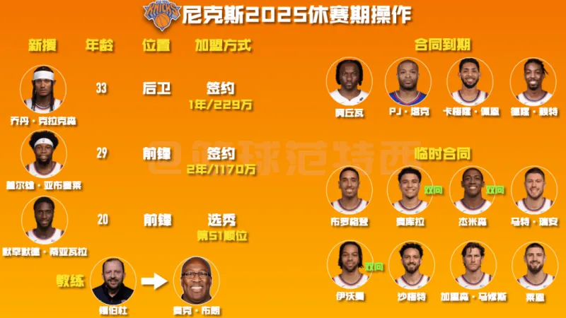 上賽季沖出東部再次失敗的尼克斯,休賽期目標清晰地進(jìn)行了人員上的升級。