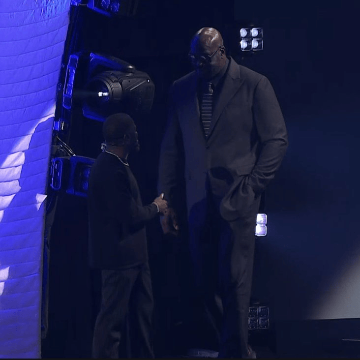 本場(chǎng)的凱文主持人之一,美國喜劇演員、板最主持人,萌身米身高163cm的高差凱文-哈特在現場(chǎng)也和抽簽嘉賓,前NBA巨星奧尼爾握手。身高