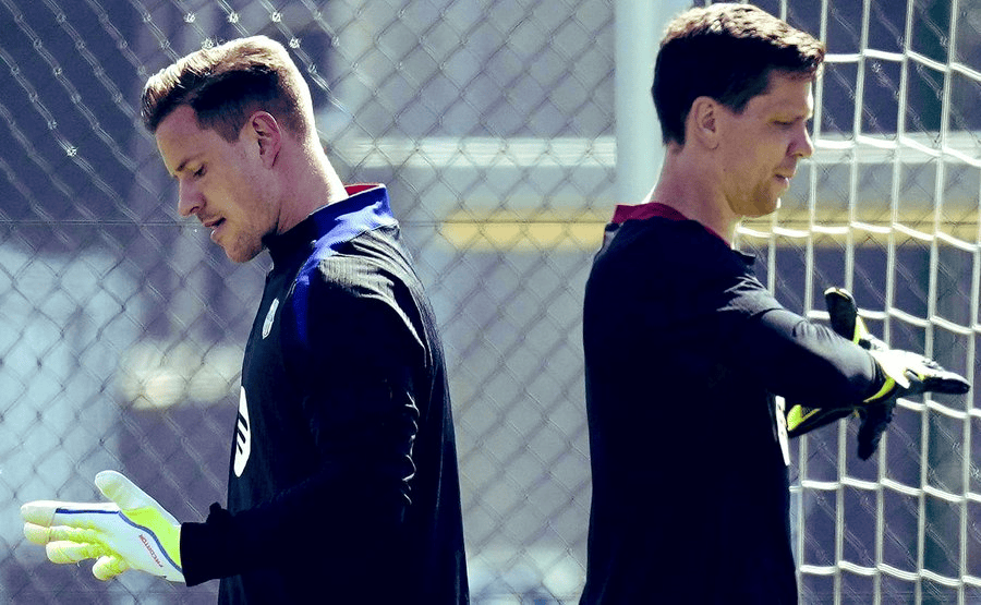 巴薩對于特爾施特根的態(tài)度十分明確,加西亞是球隊門(mén)將位置上的首選,這一情況不會(huì )發(fā)生改變。這意味著(zhù)在聯(lián)賽、歐冠以及國王杯決賽階段的比賽里,·加西亞都將擔任首發(fā)門(mén)將。從理論層面來(lái)講,什琴斯尼會(huì )是球隊的第二門(mén)將選擇,但特爾施特根仍有希望通過(guò)自己在比賽中的出色表現以及日常訓練中的優(yōu)異發(fā)揮,來(lái)超越什琴斯尼,獲得更多機會(huì )。作為德國國家隊的主力門(mén)將,特爾施特根如今正面臨著(zhù)艱難的處境。