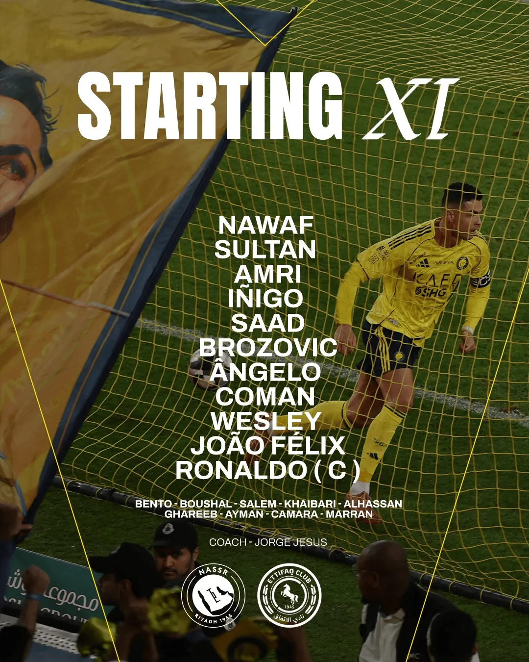 賽前,利雅得勝利公布了首發(fā)陣容。