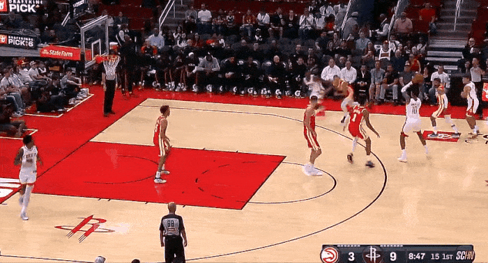 虎撲10月07日訊 NBA季前賽,火箭對陣老鷹的接球局分比賽正在進(jìn)行中。