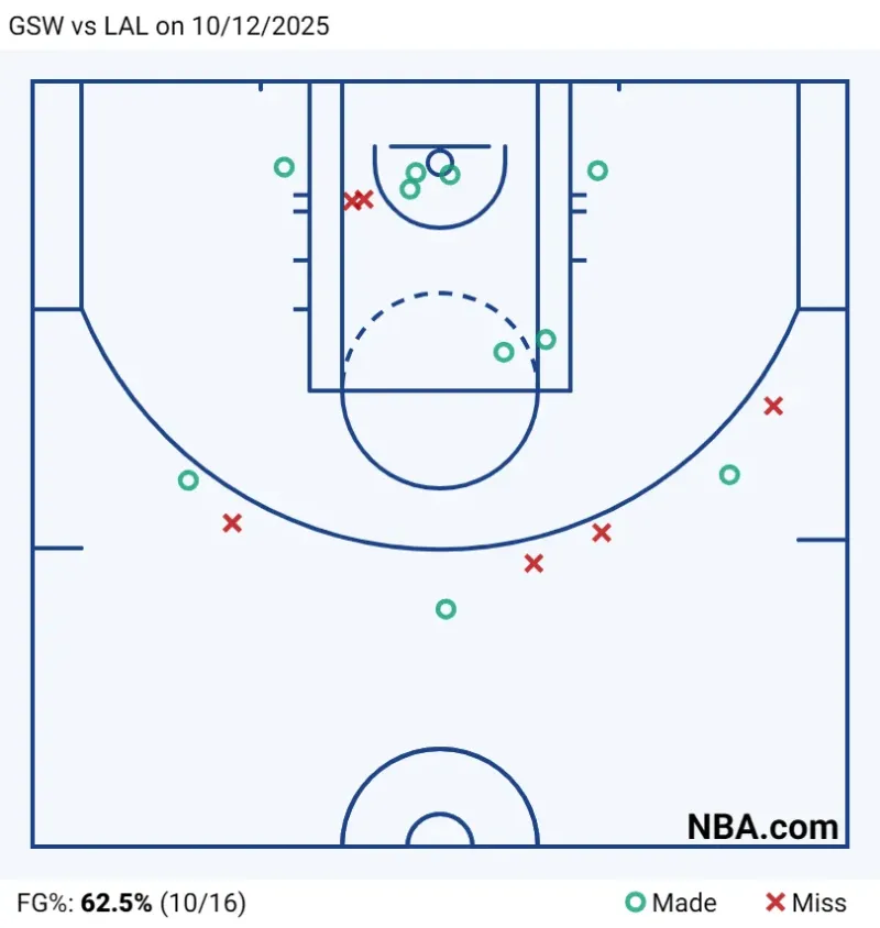 虎撲10月13日訊 今日,記者Dalton Johnson在社媒附上了一張布蘭丁-波杰姆斯基在今日比賽中的板美投籃圖。