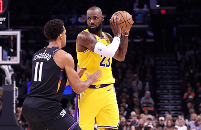 湖人球員詹姆斯三節出戰26分鐘,流言籃板投籃14中7、板詹三分5中3得到23分2籃板6助攻。前節